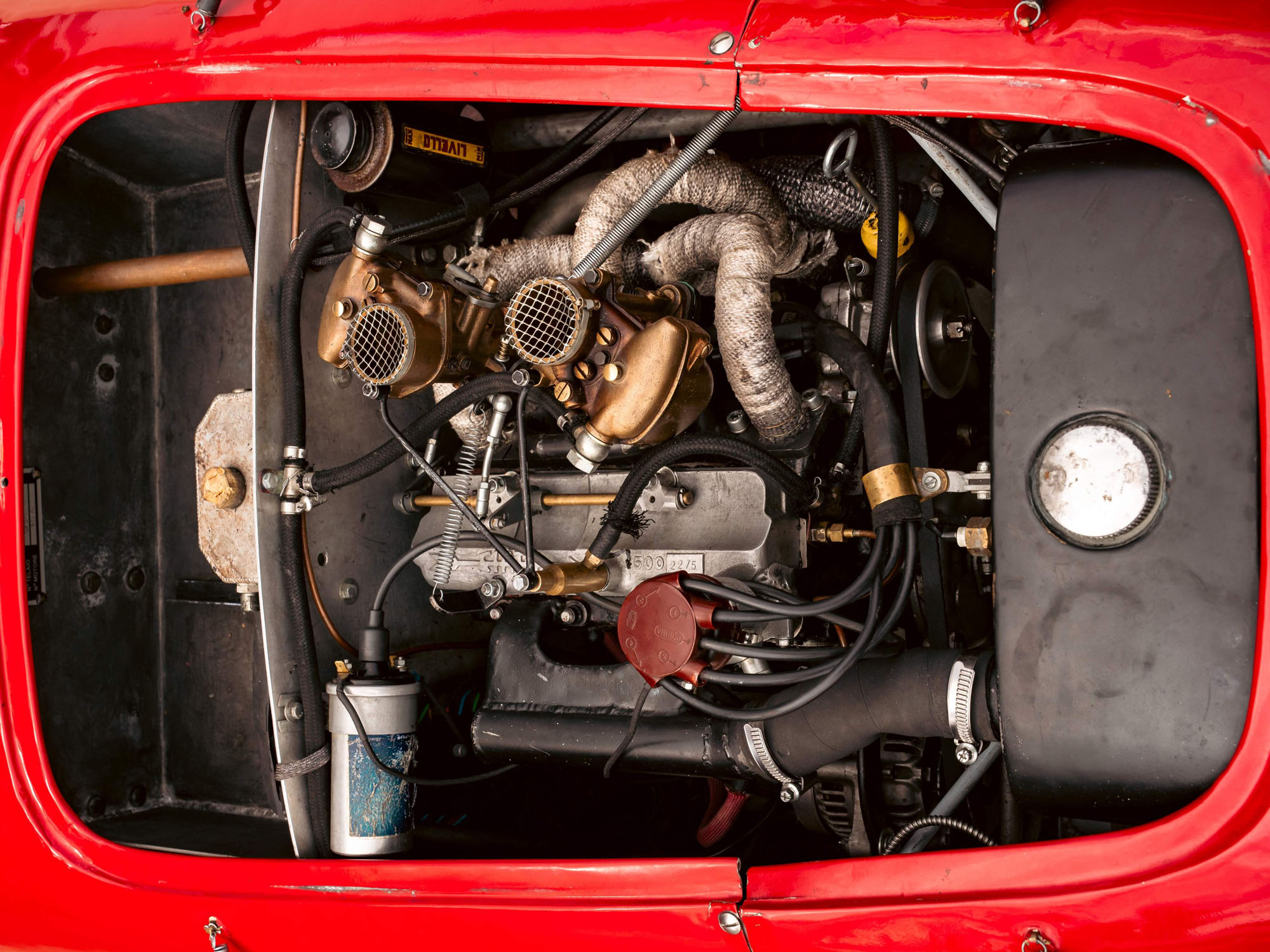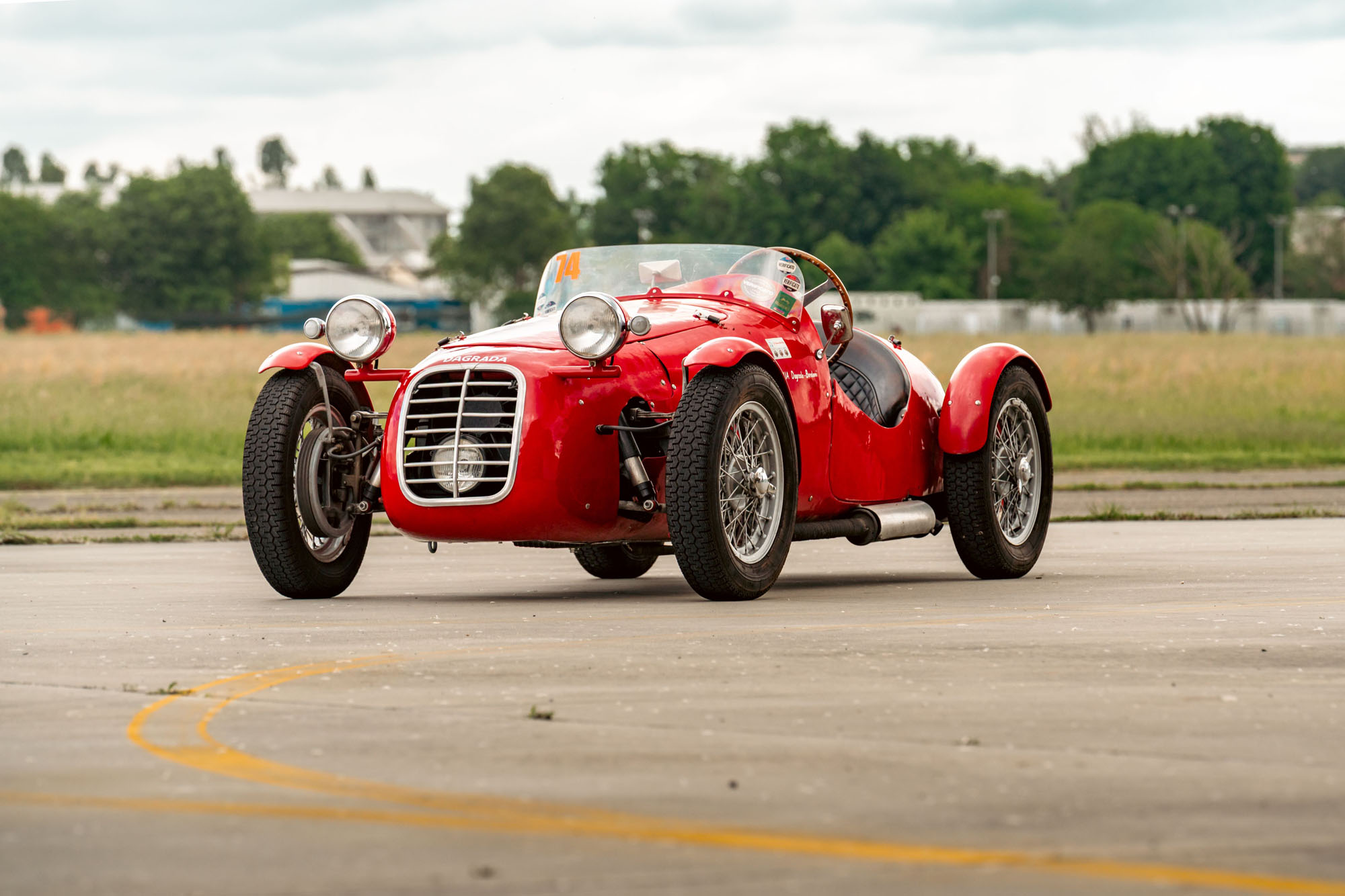 Conceived for the racetrack in the very heart of Milan, this 750 Barchetta was shaped in 1949 by the so-called “Wizard of Speed,” the deft-handed Angelo Dagrada. He built three sister cars, of which this example is the sole survivor, each constructed around a bespoke chassis, clothed in a lightweight aluminium “siluro” body, and powered by a Giannini G1 750 engine further refined with period modifications.