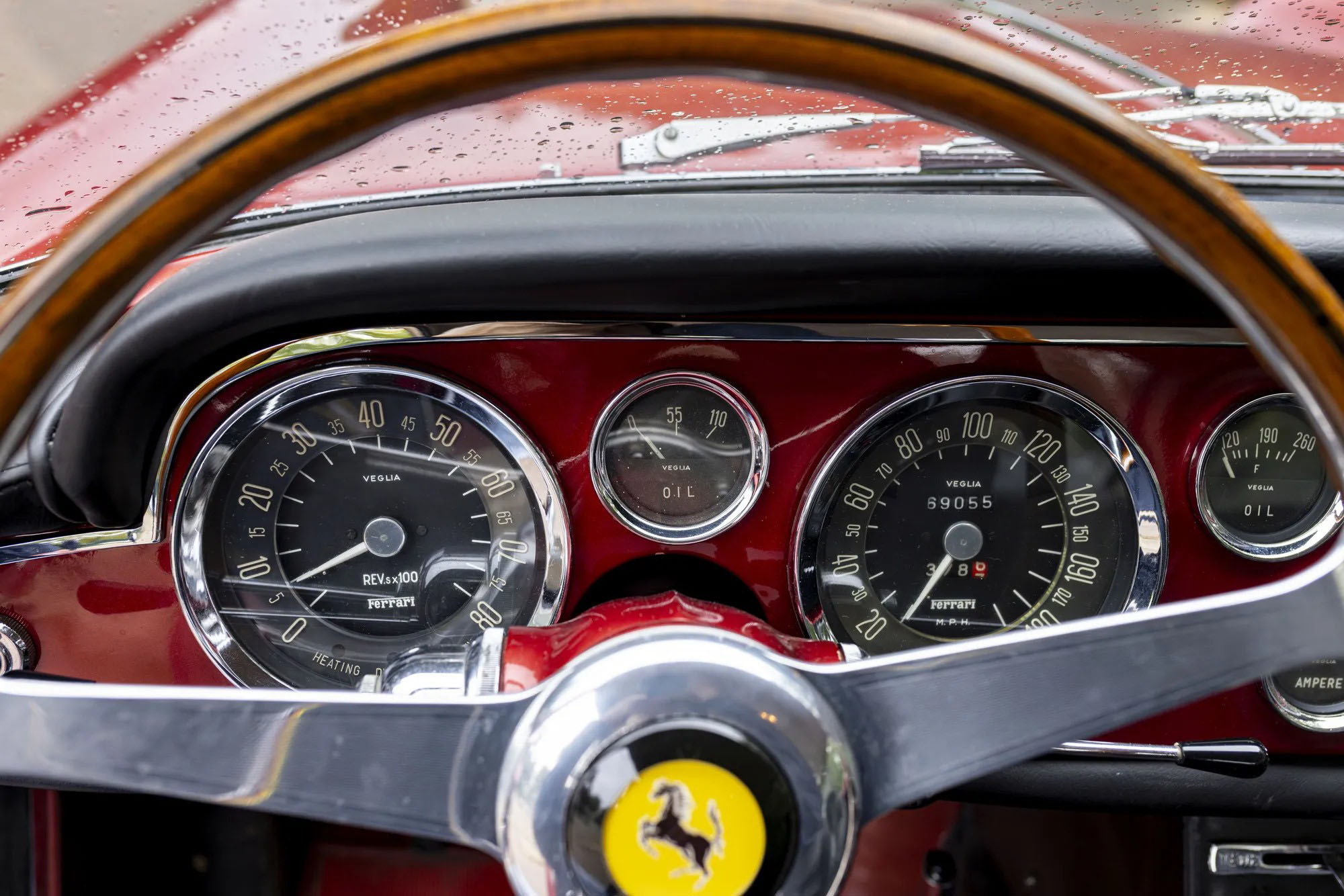 The car was prepared to participate in Cavallino Classic Modena 2025. It is accompanied by its original owner’s manuals, document pouch, and tool roll. The vast majority of the interior remains untouched and in original condition. We reinstalled the correct ANSA exhaust system, replaced the oil filters with periodcorrect units, and renewed the fuel lines - always remaining faithful to preserve everything that could stay untouched. The original Marchal headlamps were mounted and minor issues fixed by expert hands.