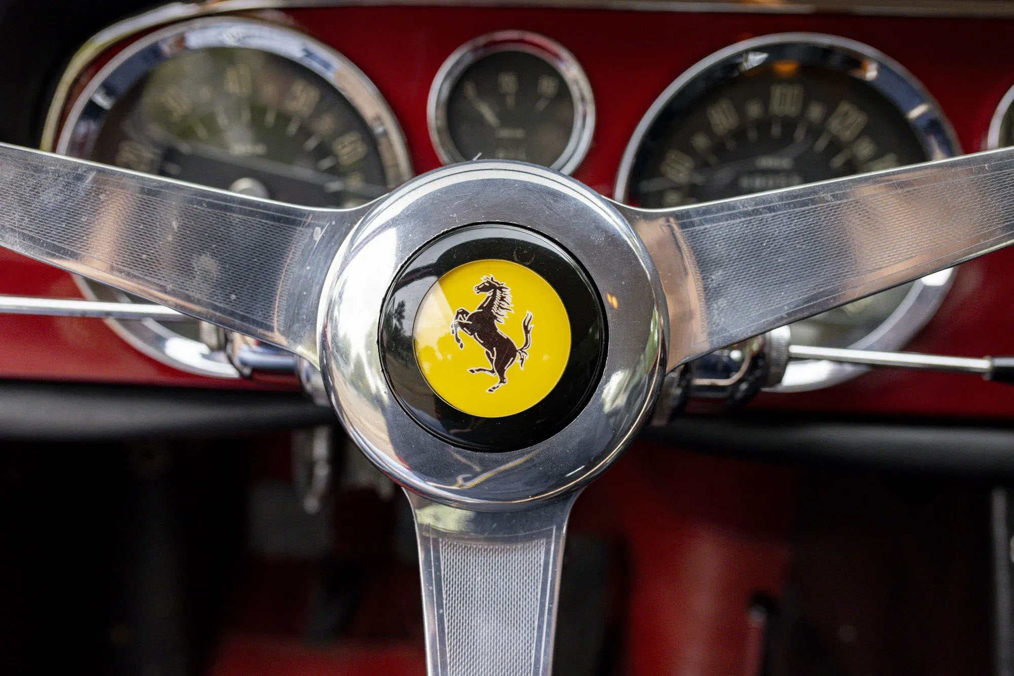 This particular Ferrari 250 GTE was delivered in 1962 through U.S. Ferrari importer Luigi Chinetti, it was first owned by Chrysler designer George Cushing, who specified it in Rubino Rosso over black Connolly leather, a combination it retains today. In 1965, the car made its way to France, finding new ownership with a Simca designer. By the late 1990s, it underwent a complete mechanical overhaul at the renowned Charles Pozzi Ferrari dealership, to ensure its continued reliability.