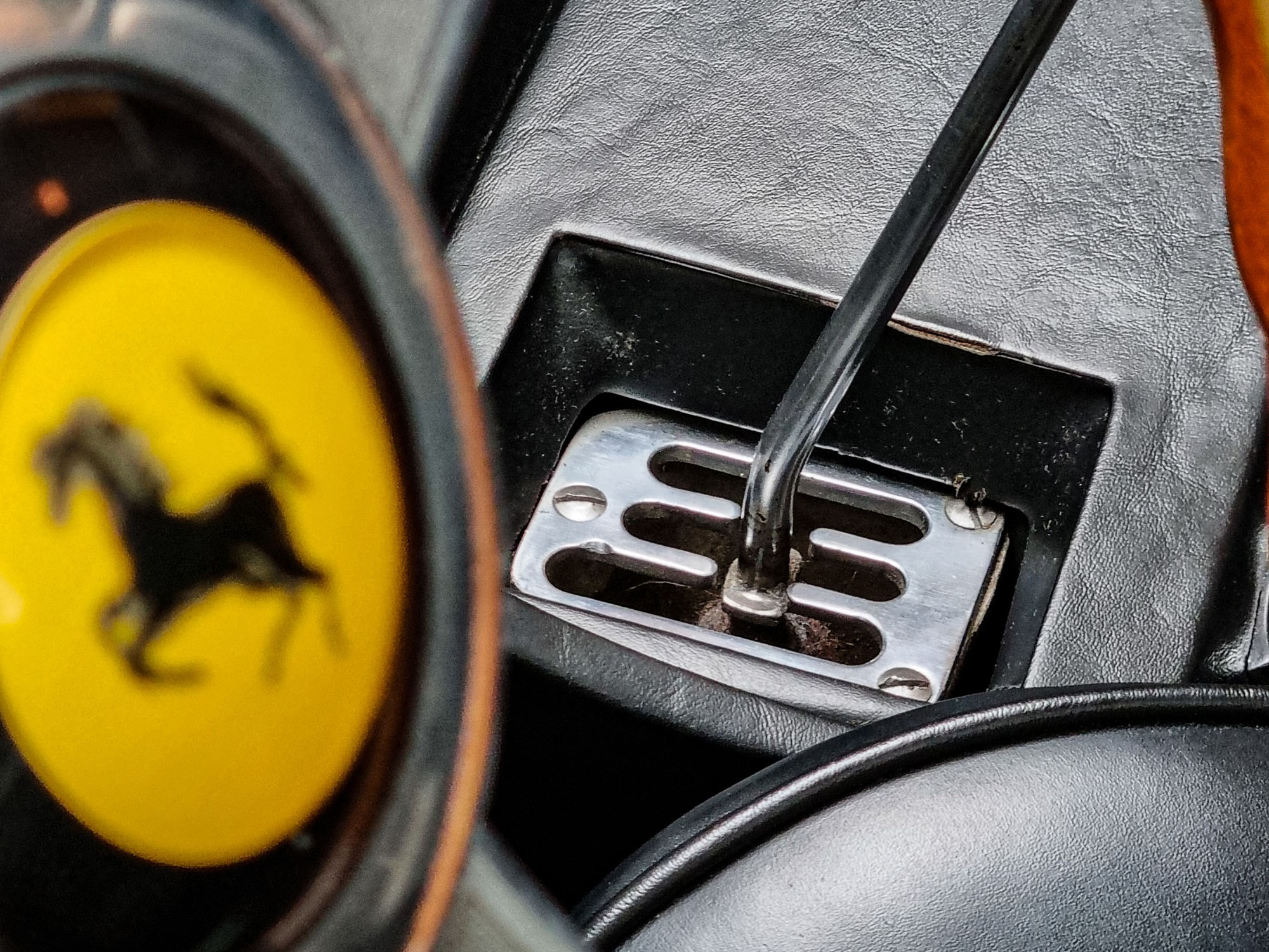 The car underwent extensive restoration 10 years ago, including a respray in its original Argento Metallizzato, and a new black leather interior as per factory specifications. The underbody is well preserved, and parts of the suspension and braking system have been refurbished due to natural wear.