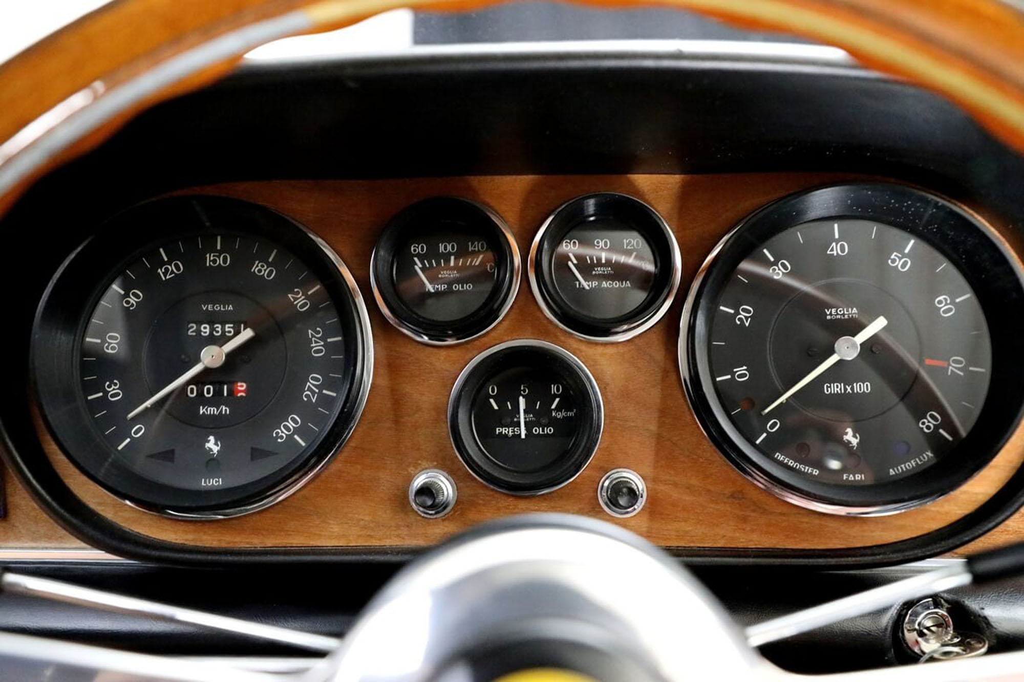 This Ferrari 330 GTC was delivered in 1968 through Crepaldi Automobili, the most prominent Ferrari dealer in Milan, Italy. The original color scheme was Argento Metallizzato (silver metallic) with a black Franzi leather interior.