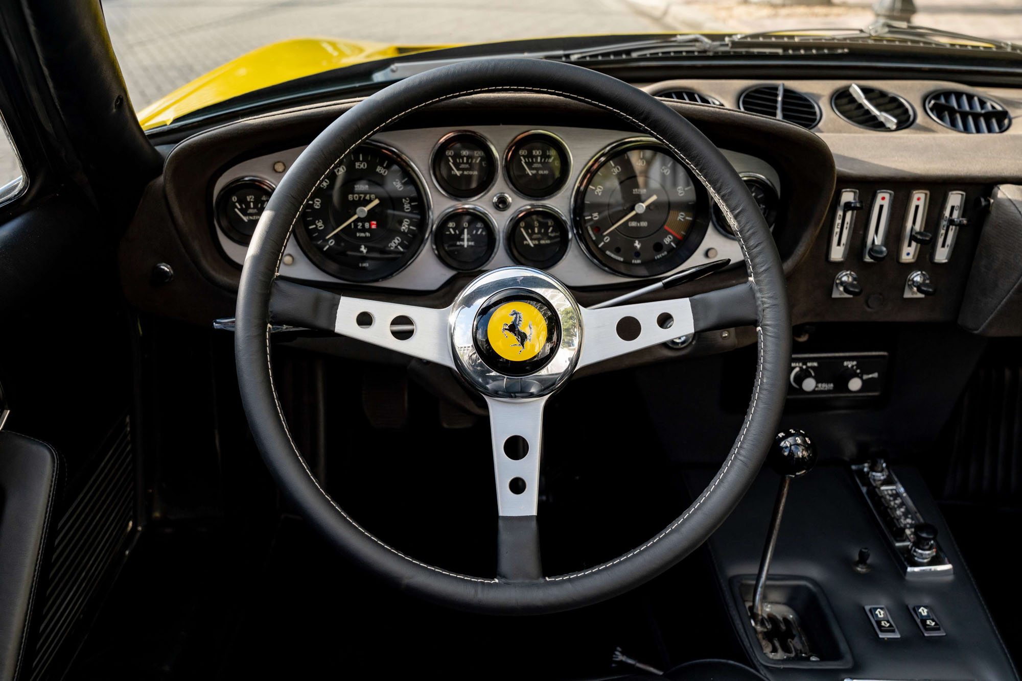 The same official dealership, long entrusted with the car’s care, certified it in 2016. Chassis #15369, in fact, comes with its Ferrari Classiche Certification - the ‘Red Book’ - confirming that the chassis, body and engine are all original and in excellent condition. Not by chance, the car still retains its original engine bay, its factory-original dashboard, which is particularly rare, as dashboards were often replaced during restorations, and many other original components.