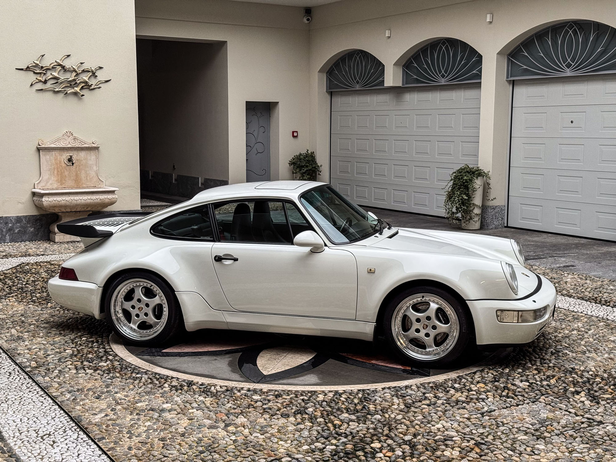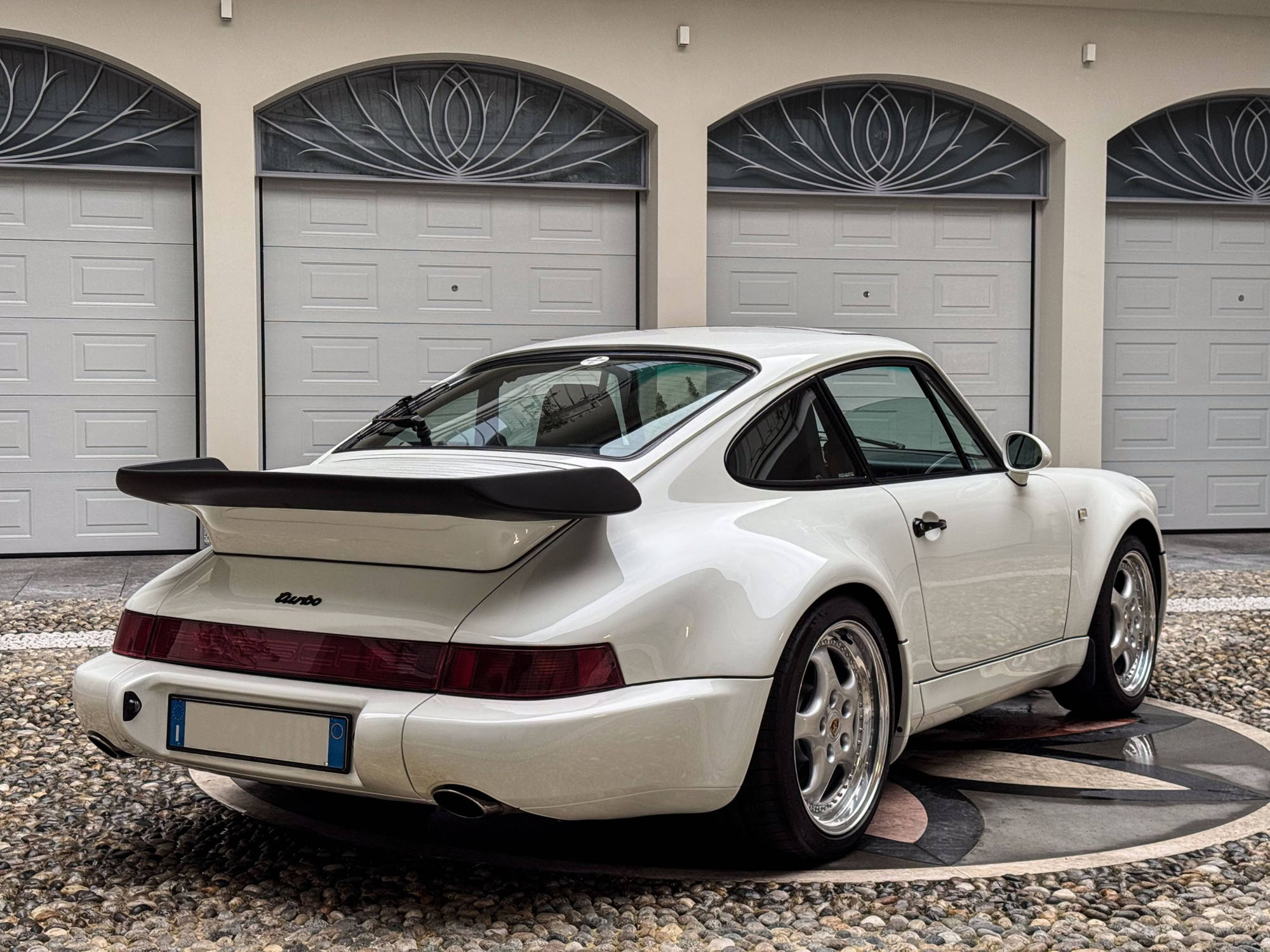 This 1991 Porsche 964 Turbo, finished in GP White, is a well-kept example of the model, with only 87,000 kilometers. First delivered in Italy, the car later moved to Germany before returning to Italy in 2010.